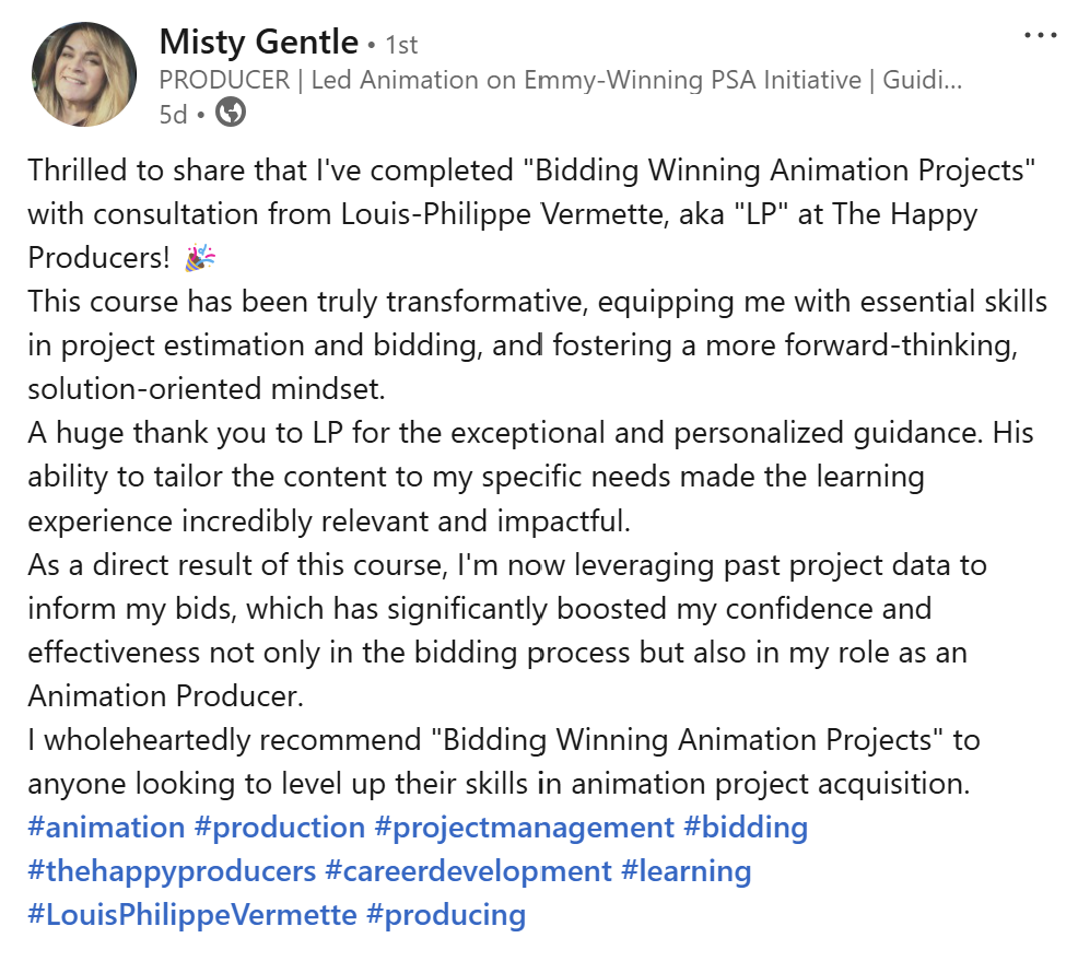 Learn business development and animation project budgeting.